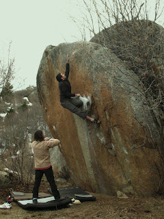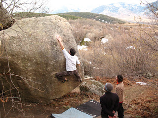 Y es que este sabado pasado recibimos visita inesperada de Mathieu y Gyom, hacia tiempo que no los veiamos por aqui! y Blops, que esta pillando el virus targasoniano y de que tiene un dia monta a blokar! y bien motivados empezaron la tarde al Aigle; donde despues de calentar estuvieron probando "le trou oculte" un 7a/+ de categoria al que dieron unos cuantos buenos pegues y al que tendran que volver porque el encadene esta a la puerta de la esquina... un par de cubatas menos la noche del viernes y hubiera pasado sin problemas...